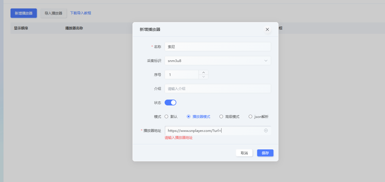 需要先再网站后台添加对应的播放器,才可以实现播放,具体操作流程如下